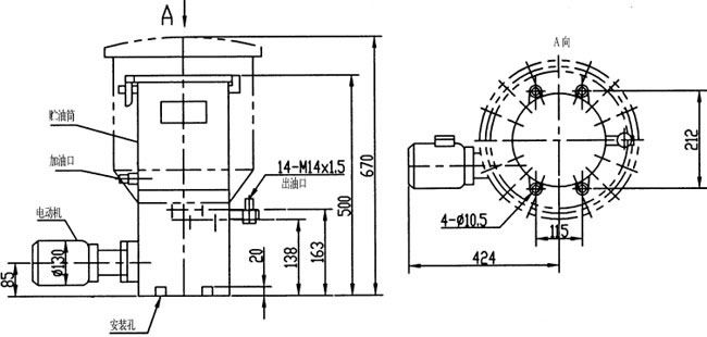 4、給油口數可在1~14范圍內任意選擇,根據設備需要不用的壓油泵元件可以自行拆下,螺孔用M20×1.5螺塞封堵即可。