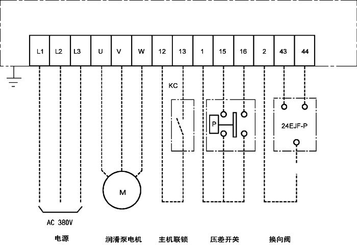 適用于 40MPa 雙線終端式干油集中潤 滑系統中,與主機聯鎖信號接通后,手動控制潤滑泵運轉向系統供送潤滑脂,自動 換向完成一個潤滑周期供脂后自動停止。