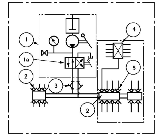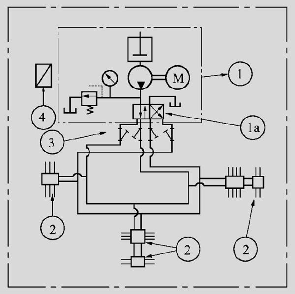 液壓換向閥1a具有切換兩條供油主管和控制供油主管末 端壓力的功能,當供油的主管末端壓力達到液壓換向閥的設定壓力時,液壓換向閥換向,并向電控箱發送信號,潤滑泵① 停止,系統一次給油完成。經過設定的時間間隔后,系統再次工作,從另一條主油管供油。