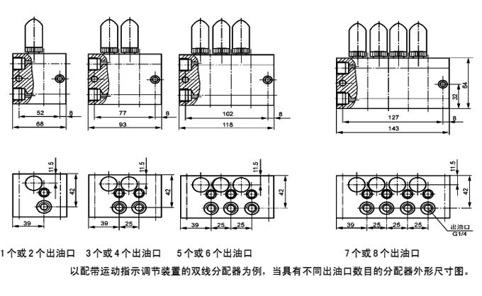 1、帶有給油螺釘?shù)姆峙淦鳎⊿SPQ1型),須按每對出油口的順序注明給油指數(shù),不注明按給油指數(shù)1供貨。