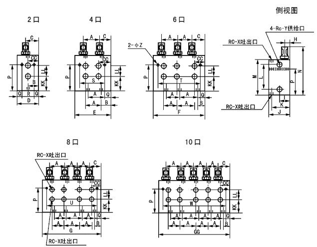 該系列雙線分配器在正面和上、下面均設(shè)有出油口,為雙向出油形式,正面上排與上面對(duì)應(yīng)出油口貫通,正面下排與下面對(duì)應(yīng)出油口相貫通,根據(jù)配管方向需要任意選擇,分配器活塞正反向動(dòng)作分別從上下側(cè)出油口排出潤滑脂一次,為方便增大倍量的給油量,易改奇數(shù)出油,在上下對(duì)應(yīng)的出油口間還設(shè)有合二為一的結(jié)構(gòu),使用時(shí)只需擰開下出口內(nèi)的螺釘,不用的出口用R1/4螺塞封堵即可。