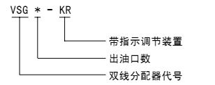 VSG-KR型雙線分配器上、下面均有給油口,分配器活塞正反向動(dòng)作時(shí)分別從上面和下面的給油口排出一次。在相應(yīng)上、下給油口內(nèi)設(shè)有合二為一的排油結(jié)構(gòu),要改變奇數(shù)出油,只需調(diào)整導(dǎo)套的方向即可實(shí)現(xiàn)。還可以從指示桿的動(dòng)作直接觀察分配器的工作情況,同時(shí)還可以通過調(diào)整螺釘在規(guī)定范圍內(nèi)方便地調(diào)整各個(gè)出油口的給油量。