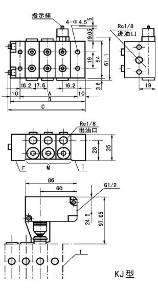 KJ、KM、KL系列單線遞進式分配器,它由中碳合金結構鋼制造的供給體、端部體和3~8片根據設計需要所確定的給油量和出油口數的中間體組合而成。分配器的正常出口設置于分配器的兩側面,在上面還設置有預備出口,各中間體的出油口內均裝有止回閥,能徹底防止因潤滑點背壓作用而產生潤滑脂的逆流,保證了各出油口的給油量定量、準確。