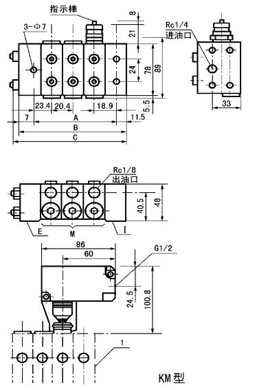 KM-*不帶循環指示器和循環開關時尺寸參數表