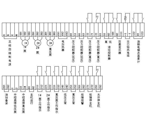 油箱上裝有電接點雙金屬溫度計,油溫低時發(fā)出信號,人工接通電加熱器,達到設(shè)定溫度時,自動切斷電加熱器。