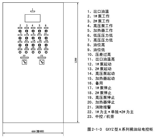 稀油站成套供貨時配有儀表和電控箱,以顯示運行參數(shù)和實現(xiàn)稀油站自控、手控或報警。