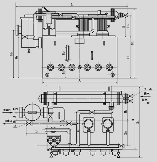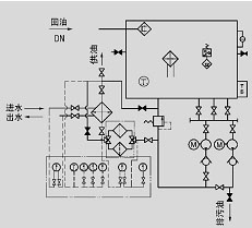 稀油站工作介質粘度等級為N22~N320的工業潤滑油,公稱壓力為0.4MPa,過濾精度0.08~0.12mm;冷卻水溫≤28℃;冷卻水壓力0.2~0.3MPa;冷卻器進油溫度為50℃,溫降7~8℃;使用蒸汽加熱時蒸汽壓力為0.2~0.4MPa。