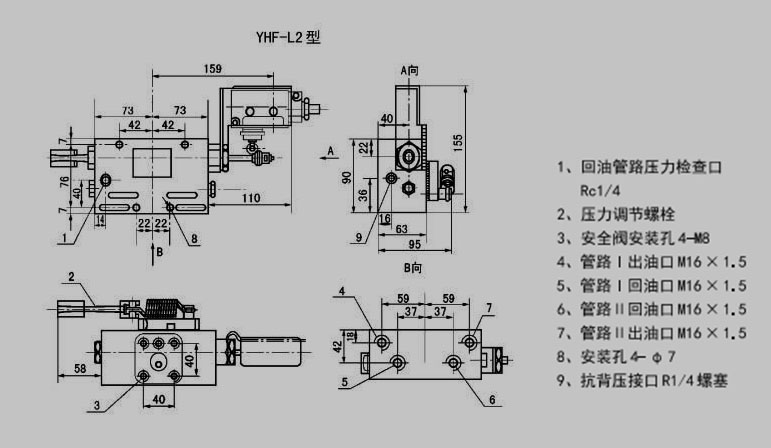 YHF-L1型閥與流量585mL/min的泵相配,安裝于底板上。YHF-L2型閥與流量60和195mL/min的泵相配,安裝于泵體上。
